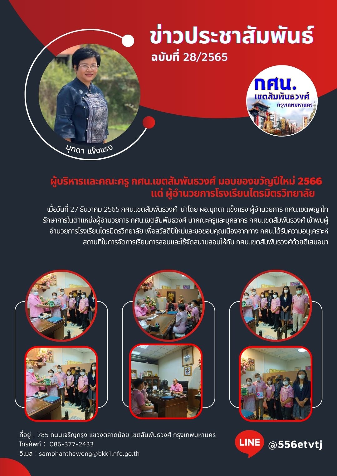 ผู้บริหารและคณะครู กศน.เขตสัมพันธวงศ์ มอบของขวัญปีใหม่ 2566 แด่ ผู้อำนวยการโรงเรียนไตรมิตรวิทยาลัย