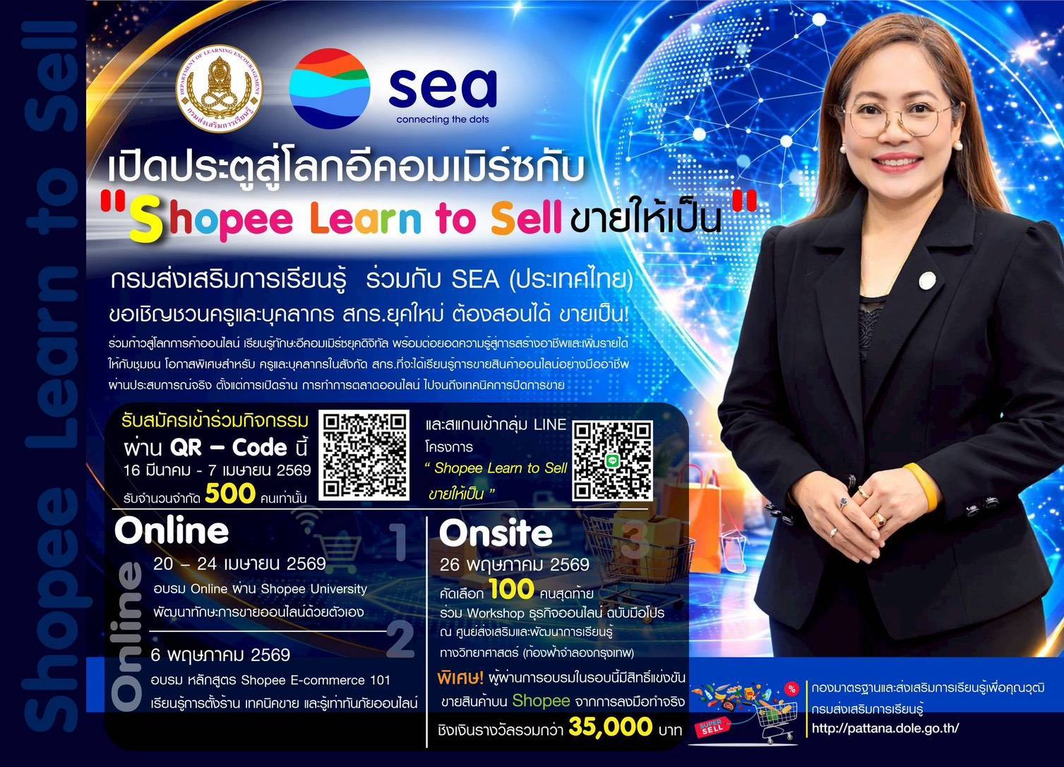 กรมส่งเสริมการเรียนรู้ (สกร.) ร่วมกับ SEA (ประเทศไทย) ขอเชิญชวนครูและบุคลากร สกร. สมัครเข้าร่วมกิจกรรม “Shopee Learn to Sell”