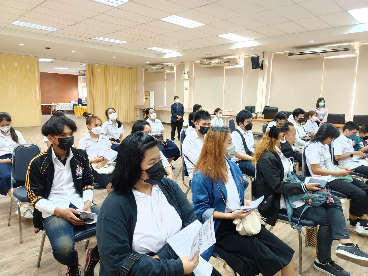 6 พฤศจิกายน 2565 กศน.เขตสัมพันธวงศ์ กรุงเทพฯ ดำเนินกิจกรรมปฐมนิเทศนักศึกษา ประจำภาคเรียนที่ 2/2565 "รู้ครบ จบตามเกณฑ์" ณ ห้องประชุมเยาวราช ชั้น 5 อาคาร 2 สำนักงานเขตสัมพันธวงศ์ โดยมีวัตถุประสงค์เพื่่อชี้แนวทางการจัดการเรียนการสอน และให้ความรู้เกี่ยวกับการทำโครงงาน โอกาสนี้ นางสาวมุกดา แข็งแรง รักษาการผู้อำนวยการ กศน.เขตสัมพันธวงศ์ กทม. ได้มาพบปะและสร้างความตระหนักให้นักศึกษาเห็นความสำคัญของเรียนรู้ ขอขอบคุณคณะครู นิสิตฝึกประสบการณ์ ที่ช่วยกันจัดเตรียมสถานที่ เอกสารการเรียนแจกให้นักศึกษา และที่ขาดเสียมิได้คือขอขอบคุณภาคีเครือข่ายผู้อำนวยการเขตสัมพันธวงศ์ ที่ให้ความอนุเคราะห์สถานที่ในการจัดกิจกรรมด้วยความยินดีมาโดยตลอด