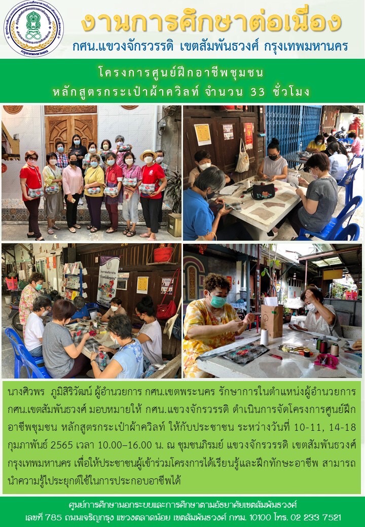 ศูนย์ฝึกอาชีพชุมชน หลักสูตรกระเป๋าผ้าควิลท์