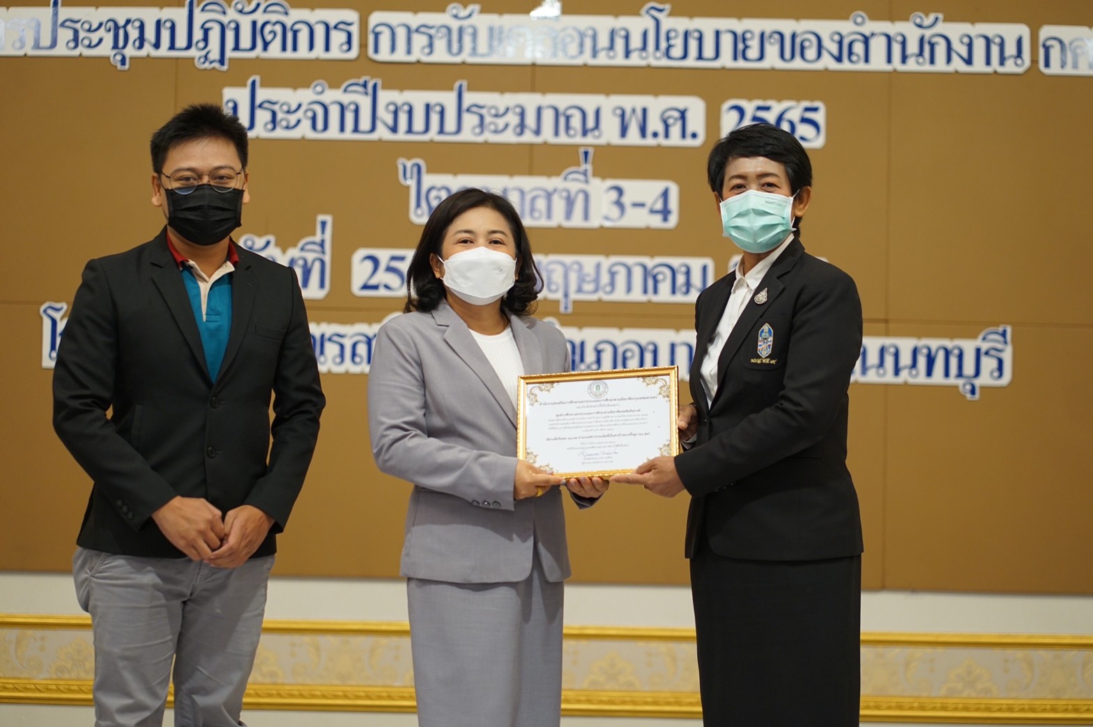 25-26 พฤษภาคม 2565 กศน.เขตสัมพันธวงศ์ โดยนางศิวพร ภูมิศิริวัฒน์ รักษาการผู้อำนวยการ กศน.เขตสัมพันธวงศ์ พร้อมด้วยข้าราชการครู และครู กศน.ตำบล เข้าร่วมโครงการประชุมปฏิบัติการการขับเคลื่อนนโยบายของสำนักงาน กศน. ประจำปีงบประมาณ พ.ศ. 2565 ไตรมาส 3-4 ณ โรงแรมเวสต์เกตเรสซิเดนซ์ อำเภอบางใหญ่ จังหวัดนนทบุรี โอกาสนี้ กศน.เขตสัมพันธวงศ์ ได้รับเกียรติบัตรสถานศึกษาที่มีผลคะแนนเฉลี่ย N-NET ครั้งที่ 2/2564 ผ่านเป้าหมายขั้นสูง จากท่านสุพรพรรณ นาคปานเอี่ยม ผู้อำนวยการสำนักงาน กศน. กทม. ด้วย