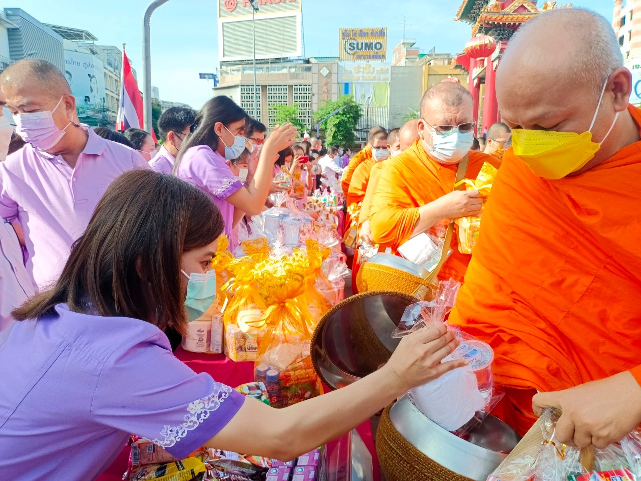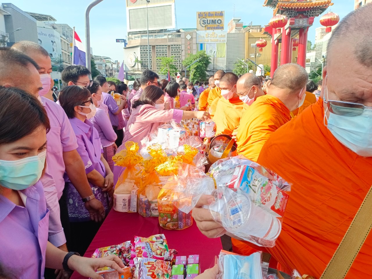 2 มิถุนายน 2565 กศน.เขตสัมพันธวงศ์ โดยนางศิวพร ภูมิสิริวัฒน์ รักษาการผู้อำนวยการ กศน.เขตสัมพันธวงศ์ พร้อมคณะครู เข้าร่วมทำบุญใส่บาตรเนื่องในโอกาสวันเฉลิมพระชนมพรรษา สมเด็จพระนางเจ้า ฯ พระบรมราชินี 3 มิถุนายน 2565 ณ บริเวรรอบซุ้มประตูเฉลิมพระเกียรติ 72 พรรษา เขตสัมพันธวงศ์ กรุงเทพมหานคร