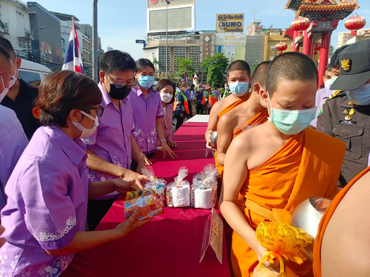 2 มิถุนายน 2565 กศน.เขตสัมพันธวงศ์ โดยนางศิวพร ภูมิสิริวัฒน์ รักษาการผู้อำนวยการ กศน.เขตสัมพันธวงศ์ พร้อมคณะครู เข้าร่วมทำบุญใส่บาตรเนื่องในโอกาสวันเฉลิมพระชนมพรรษา สมเด็จพระนางเจ้า ฯ พระบรมราชินี 3 มิถุนายน 2565 ณ บริเวรรอบซุ้มประตูเฉลิมพระเกียรติ 72 พรรษา เขตสัมพันธวงศ์ กรุงเทพมหานคร