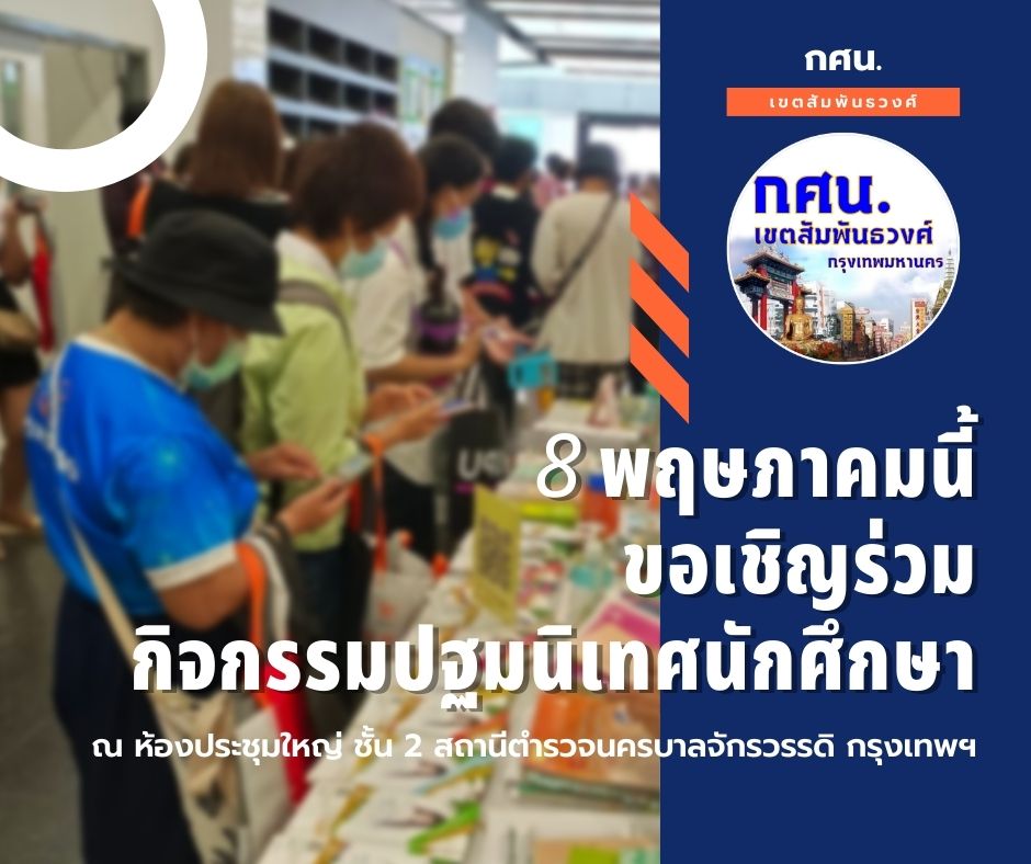 กศน.เขตสัมพันธวงศ์ ขอเชิญนักศึกษา กศน. ทุกคน ร่วมกิจกรรมปฐมนิเทศ ภาคเรียนที่ 1/2565 ณ ห้องประชุมใหญ่ ชั้น 2 สถานีตำรวจนครบาลจักรวรรดิ เขตสัมพันธวงศ์ กรุงเทพมหานคร เวลา 09.00 น. เป็นต้นไป