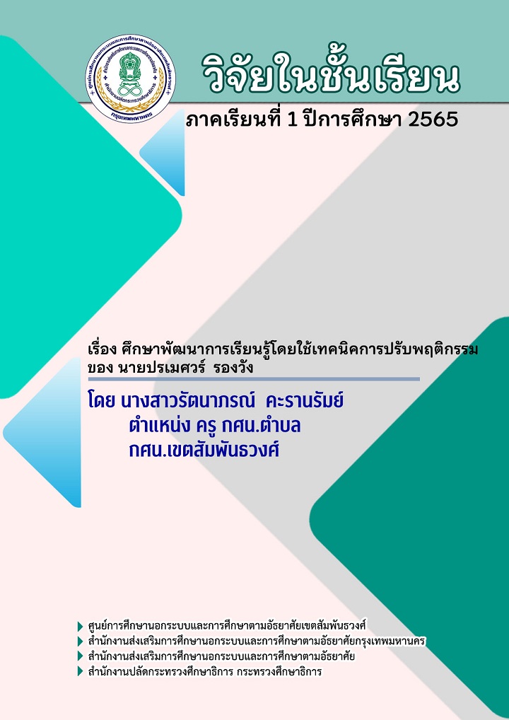 รายงานวิจัยในชั้นเรียน เรื่อง ศึกษาพัฒนาการเรียนรู้โดยใช้เทคนิคการปรับพฤติกรรมของผู้เรียน