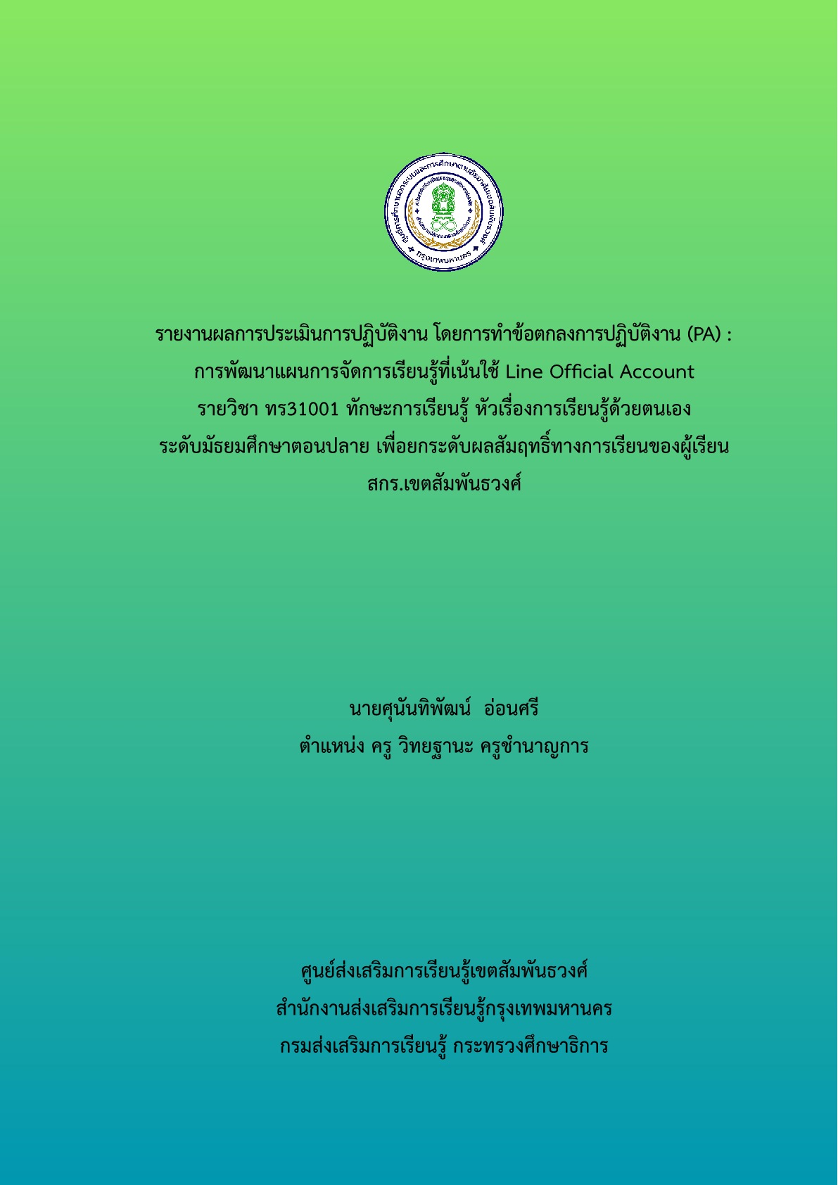 รายงานผลการประเมินการปฏิบัติงาน โดยการทำข้อตกลงการปฏิบัติงาน (PA) : การพัฒนา การจัดการเรียนรู้ที่เน้นใช้ Line Official Account